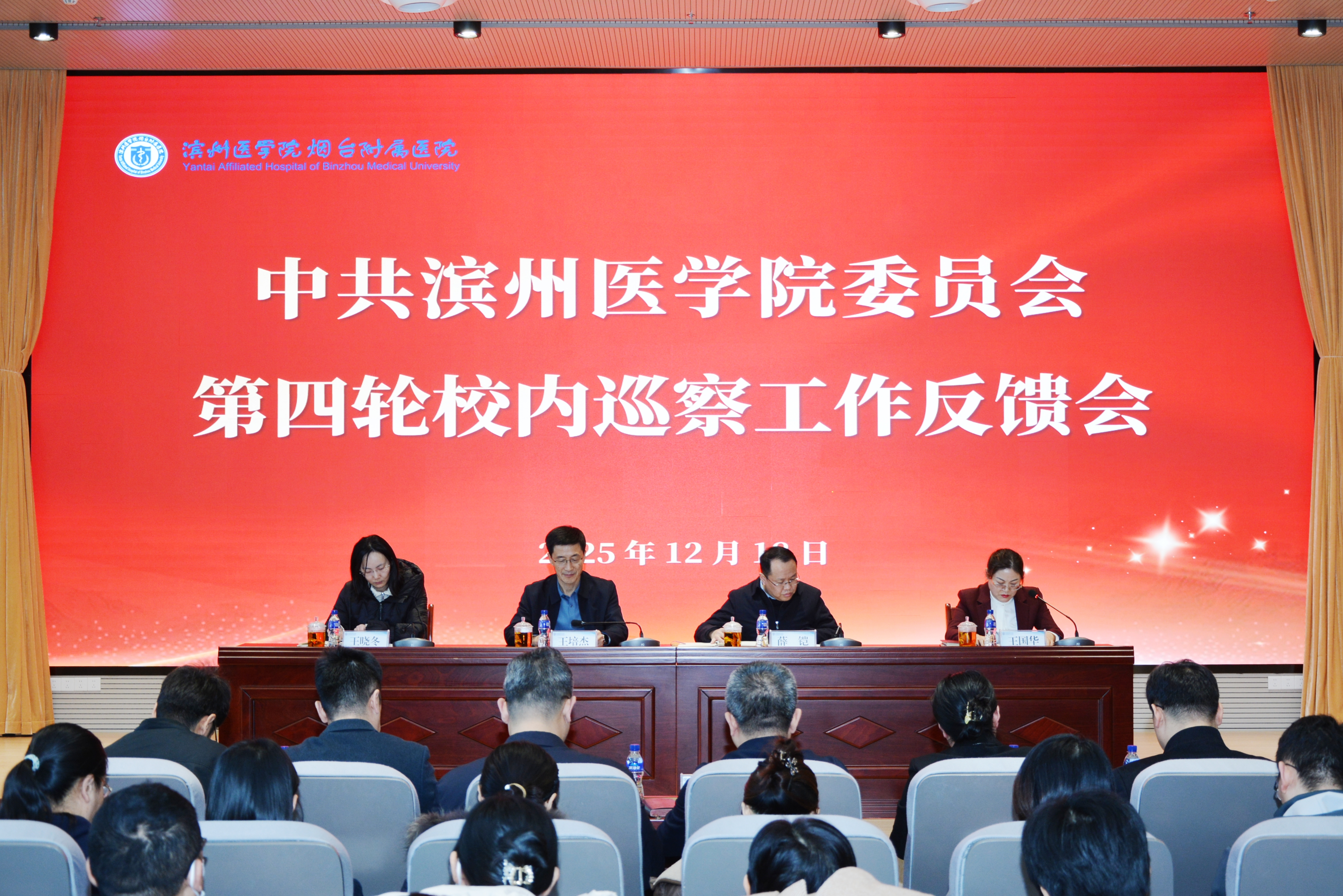 按照学校党委巡察工作统一安排,12月18日下午,校党委第一巡察组巡察滨州医学院烟台附属医院党委反馈工作会议在医院肿瘤中心四楼报告厅召开。校党委委员、纪委书记、监察专员,党委巡察工作领导小组副组长、第一巡察组组长王培杰,校纪委(监察专员办公室)综合处处长、党委第一巡察组副组长薛铠,校党委宣传部副部长、意识形态专项检查工作组组长王晓冬出席会议。医院党委书记王国华主持会议。