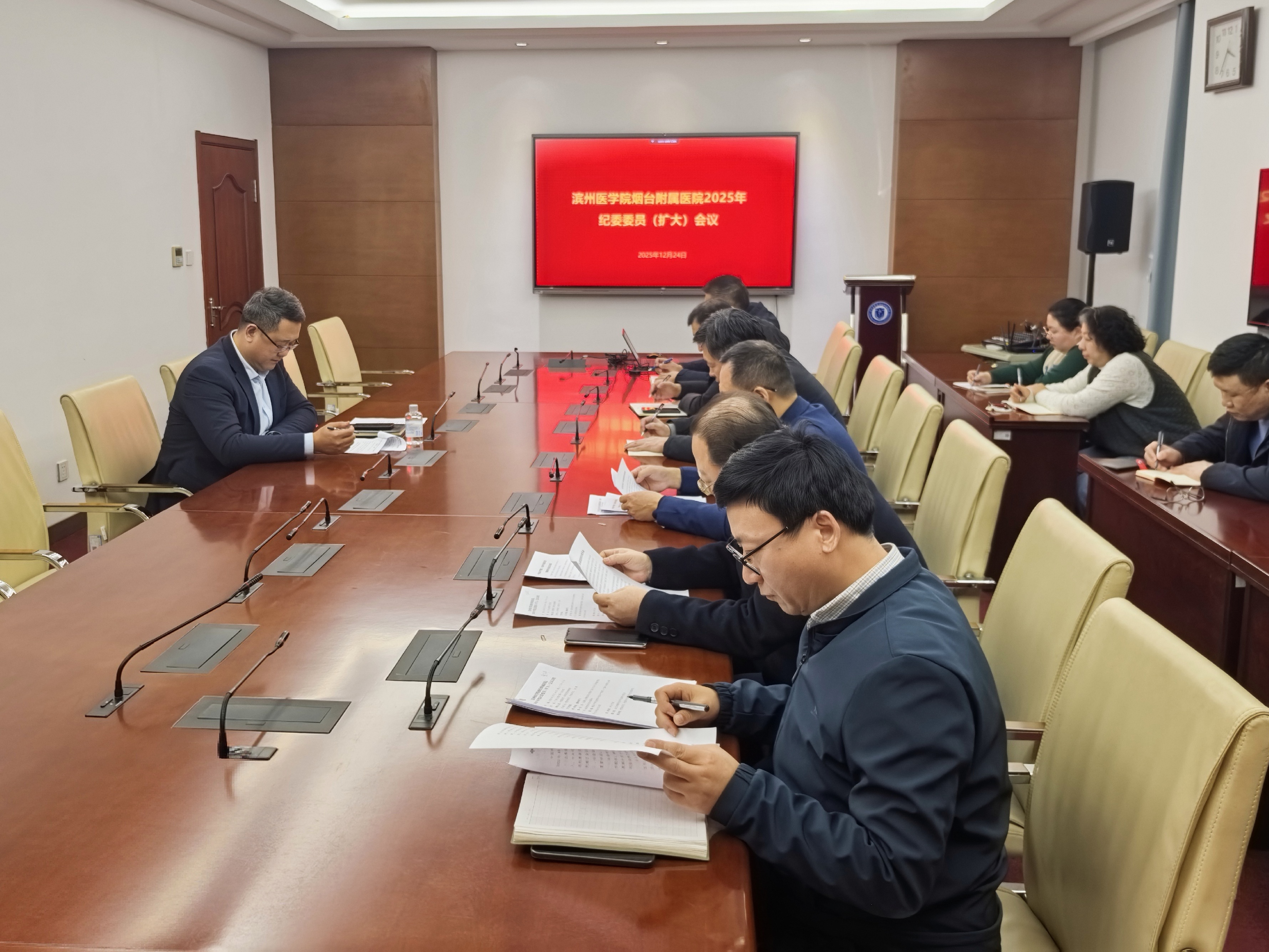 12月24日,医院纪委召开纪委委员(扩大)会议,专题学习习近平总书记重要论述及党的二十届四中全会精神。党委委员、纪委书记赵辉主持会议并讲话。医院纪委委员、各党总支纪检委员、专职纪检干部参加会议。